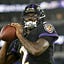 On the fifth drive: the Ravens were at the Cincy 41 after that 26-yard Dobbins catch-and-run. Huntley cocked back and hurtled a gotdanged rocket to a Ravens receiver for a 41-yard touchdown, and it was tied, 17-17.